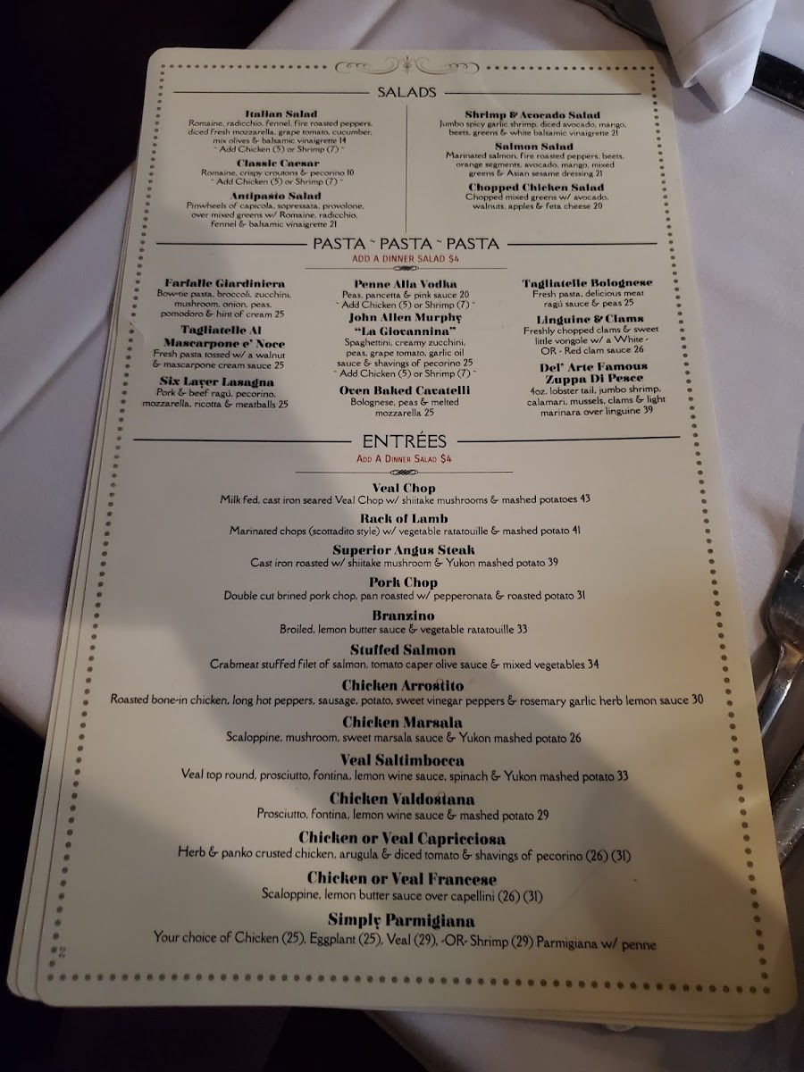 For the main event, Del' Arte’s entrees are nothing short of spectacular. The Veal Chop is exquisitely tender and beautifully presented, earning its place as a star dish. Meanwhile, seafood lovers will savor the Branzino, expertly grilled to perfection with a crispy skin and succulent meat underneath. And don’t overlook the Stuffed Salmon, bursting with flavor and paired with delightful sides that elevate the entire experience. Each plate embodies the essence of Italian hospitality, generous portions, and high-quality ingredients.